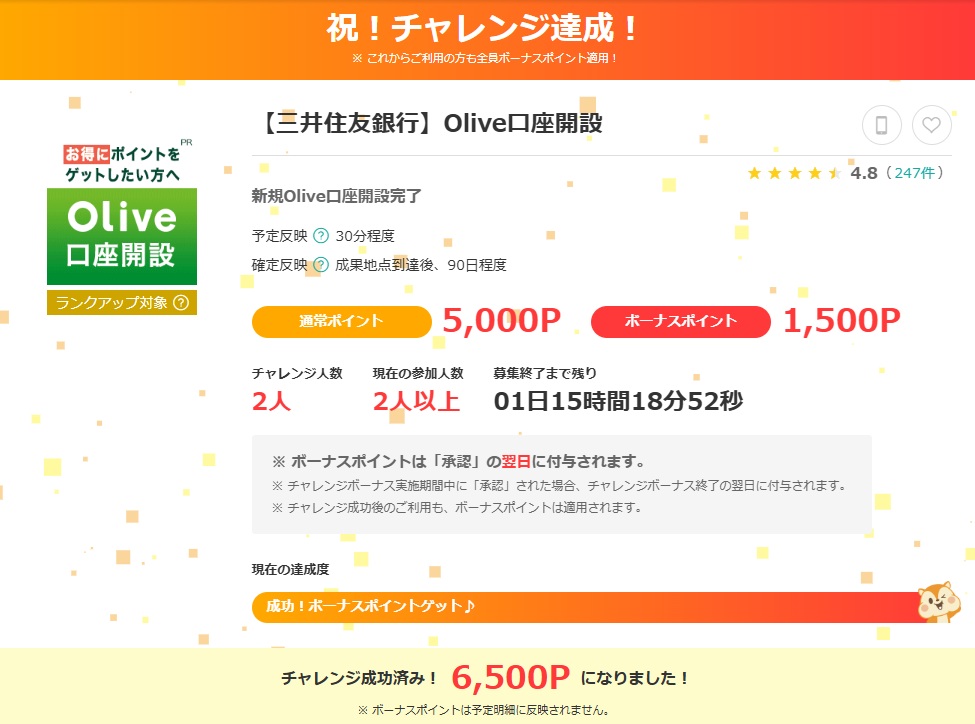 口座開設で高額特典を受けれるのもかなり大きなメリットだけども、それ以外にもポイント数は少ないけど今回のように一度設定してしまえば手間がかからないような仕組みが組めるのであれば少額でも取り組んだ方がいいと思う。例えば1時間やって200円しかもらえないような案件は長期的に続けていったらそのうち気力がなくなってしまうから自分は手を出さないけど、三井住友銀行oliveは忙しいサラリーマンでも一度設定してしまえば放置でも問題なく、十分メリットを受けれる銀行で現時点(2025年8月現在)で最強の銀行だと思うので非常におススメ