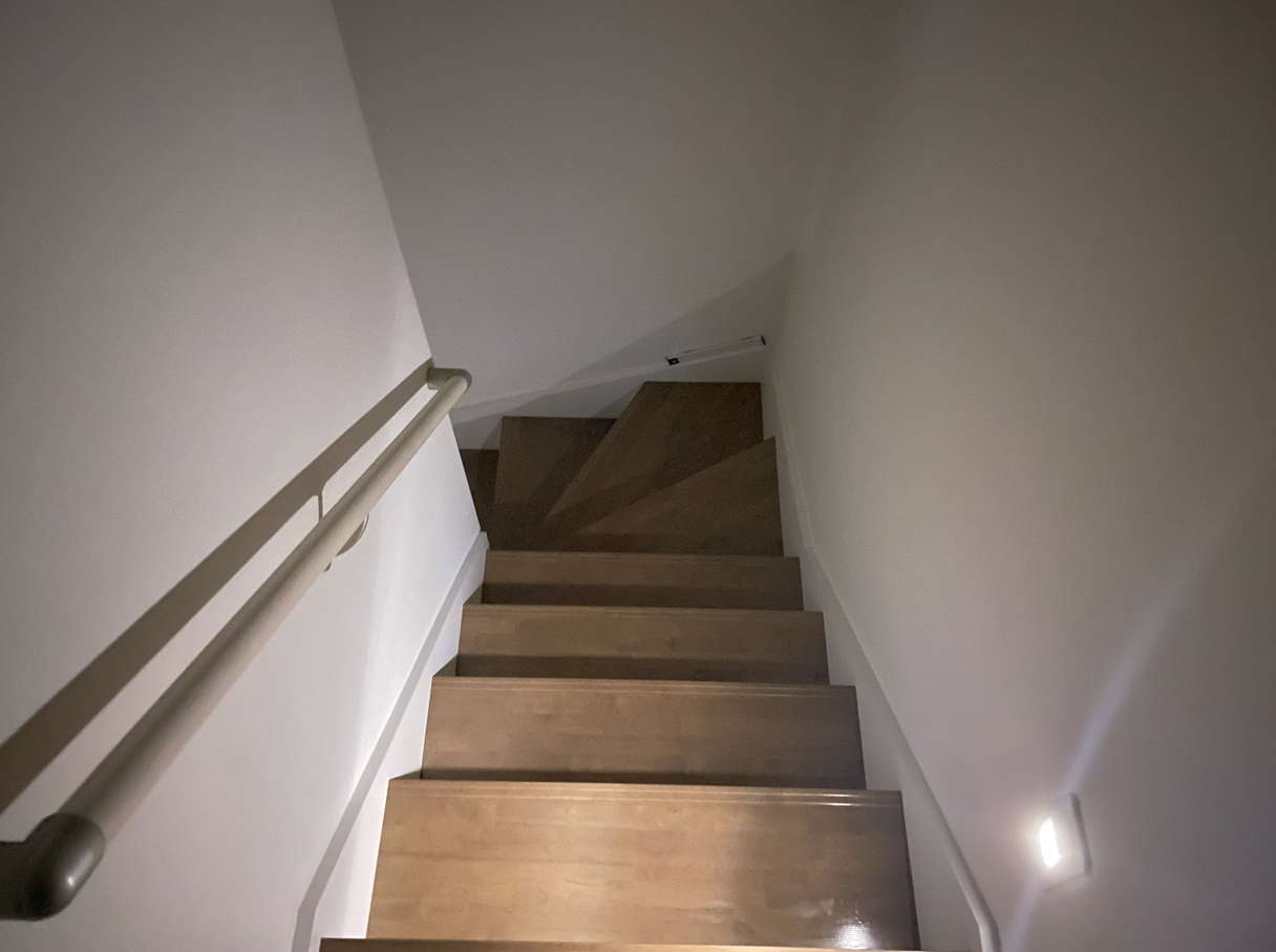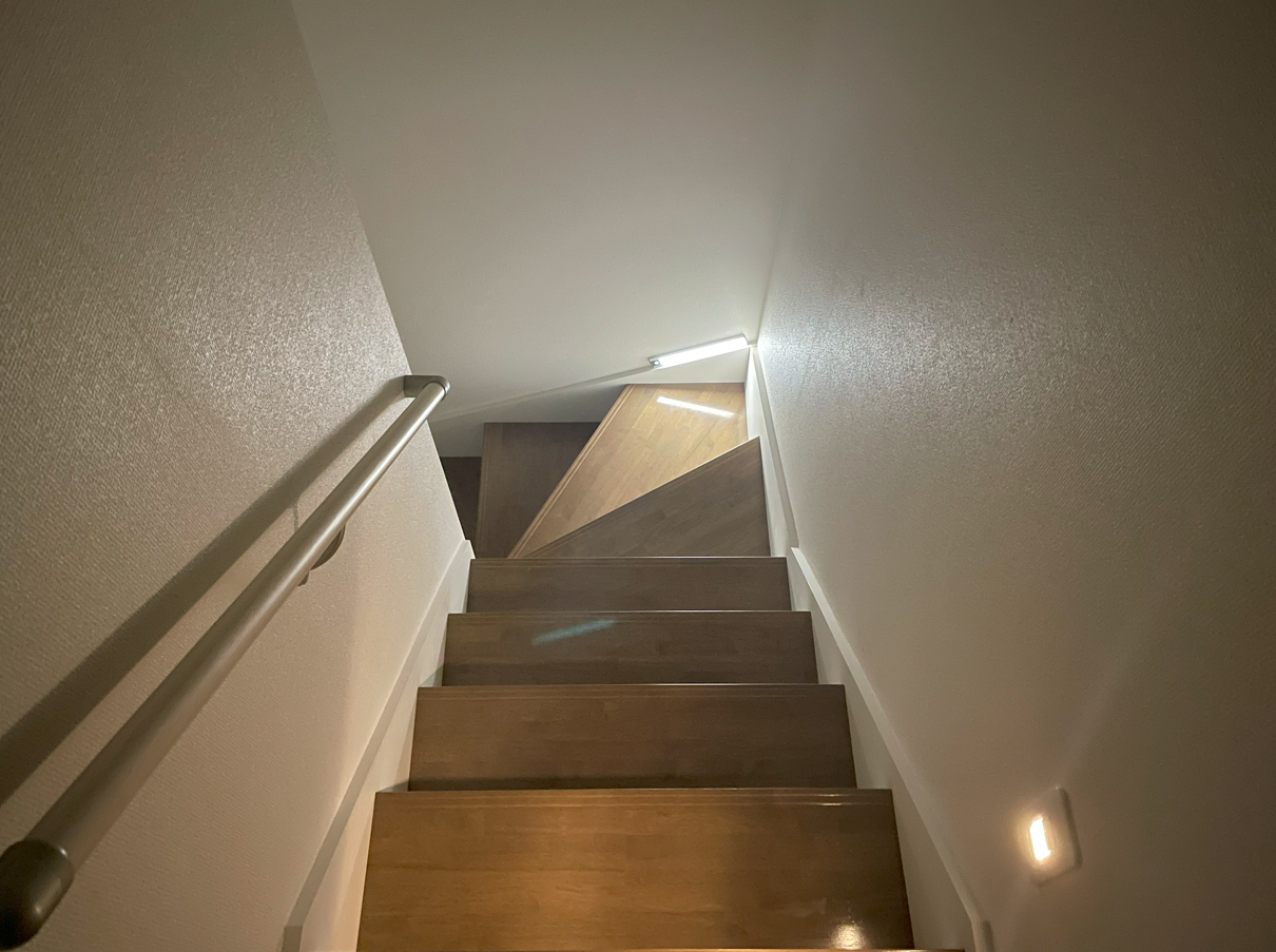 朝早く起きる、もしくは夜中階段を通る時スイッチを入れるのが面倒でよく暗いまま登り降りすることがあった。我が家の階段は入口と出口には簡単な照明は付いているものの中間地点には何もなくここで足を踏み外しそうになったことが何度かあったため、今回照明を設置