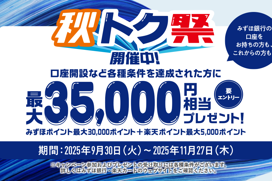 【19,000円 11月27日まで】みずほ銀行新規口座開設キャンペーン